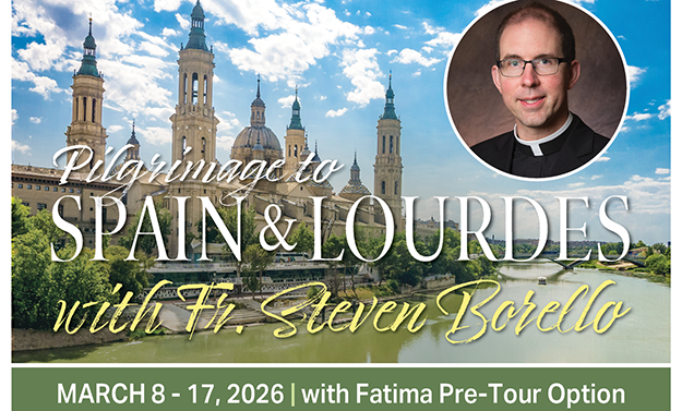 Join Fr. Steven Borello on a Pilgrimage to Spain & Lourdes starting at $4,998* from Chicago on March 8, 2026. Journey to Toledo, Zaragoza, Lourdes, Montserrat, Barcelona, and much more! Proceeds from our pilgrimages go to supporting our seminarians.