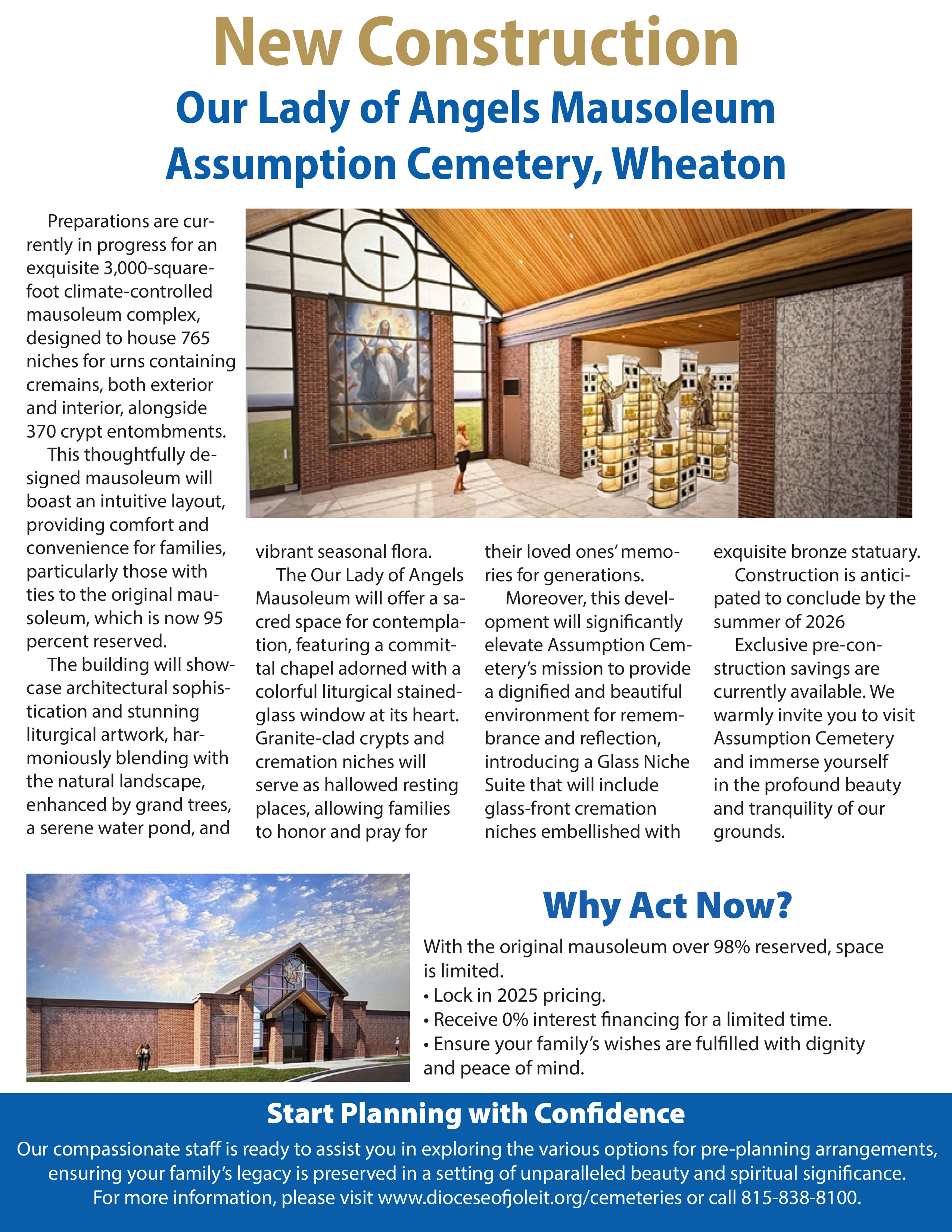 Our compassionate staff is ready to assist you in exploring the various options for pre-planning arrangements, ensuring your family’s legacy is preserved in a setting of unparalleled beauty and spiritual significance. For more information, please visit www.dioceseofjoleit.org/cemeteries or call 815-838-8100.